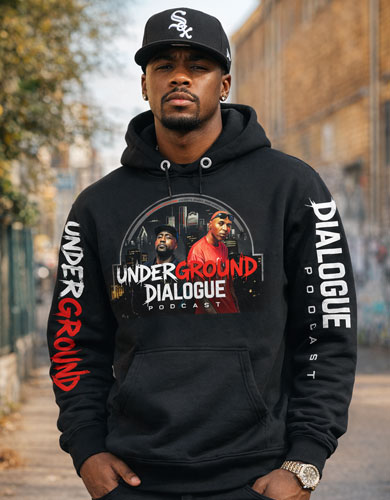 Underground Dialogue Podcast Black Hoodie with Big logo