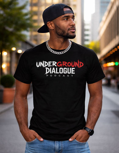 $49.99 – $74.99Price range: $49.99 through $74.99Underground Dialogue Podcast Black T-Shirt with New Logo