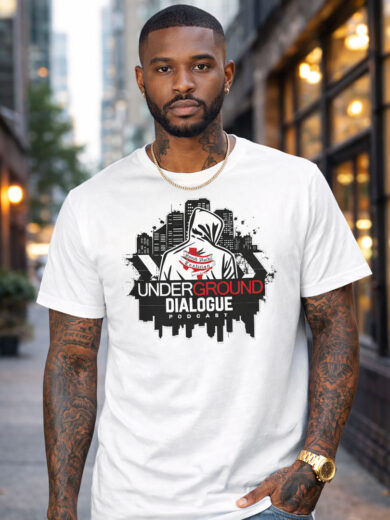 Underground Dialogue Podcast White T-Shirt with New Logo